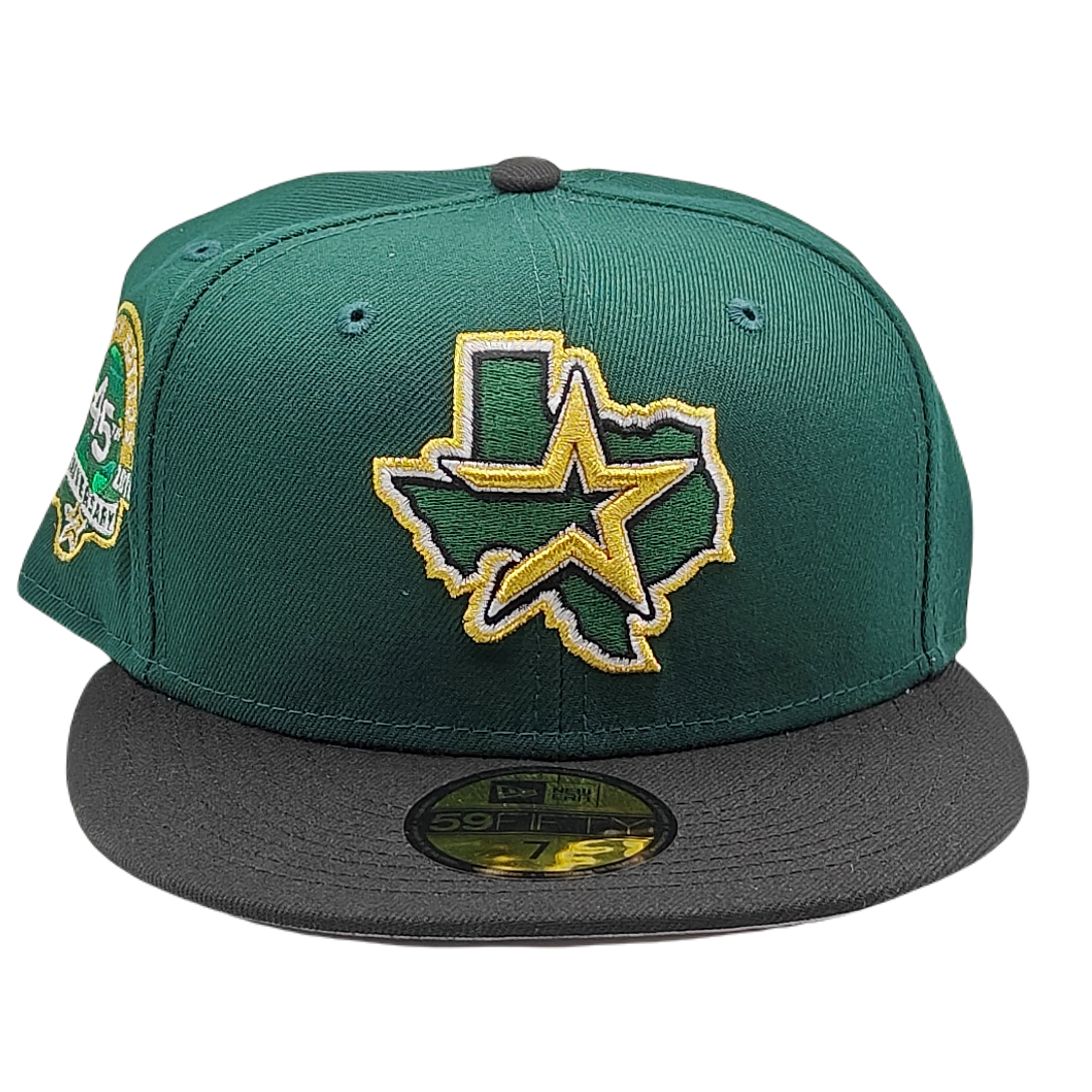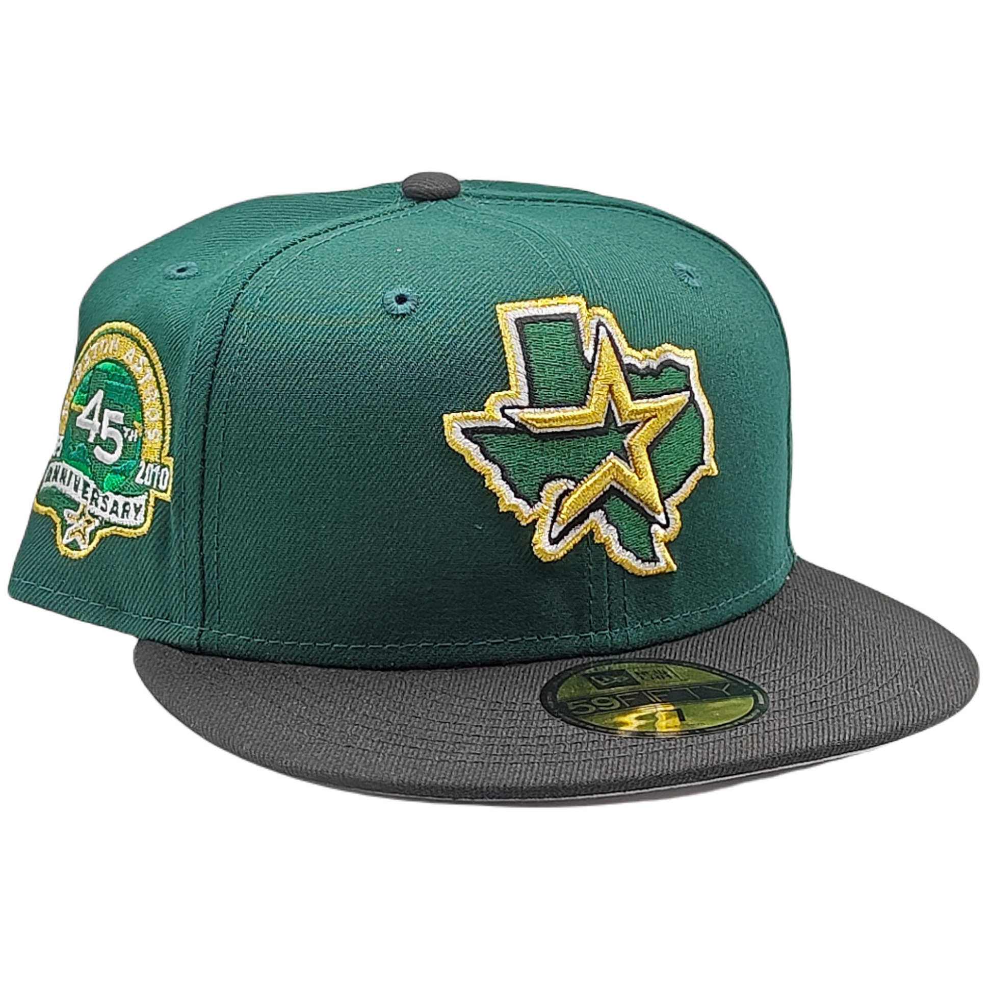 Embrace an exclusive, one-of-a-kind look with this New Era 59Fifty Houston Astros 45th Anniversary Patch Fitted Hat, featuring a unique colorway inspired by the Dallas Stars hockey team. This cap's distinctive design effortlessly marries the iconic Houston Astros logo with the memorable green and gold aesthetics of the Dallas Stars, making it a sought-after addition to any hat enthusiast's collection.
