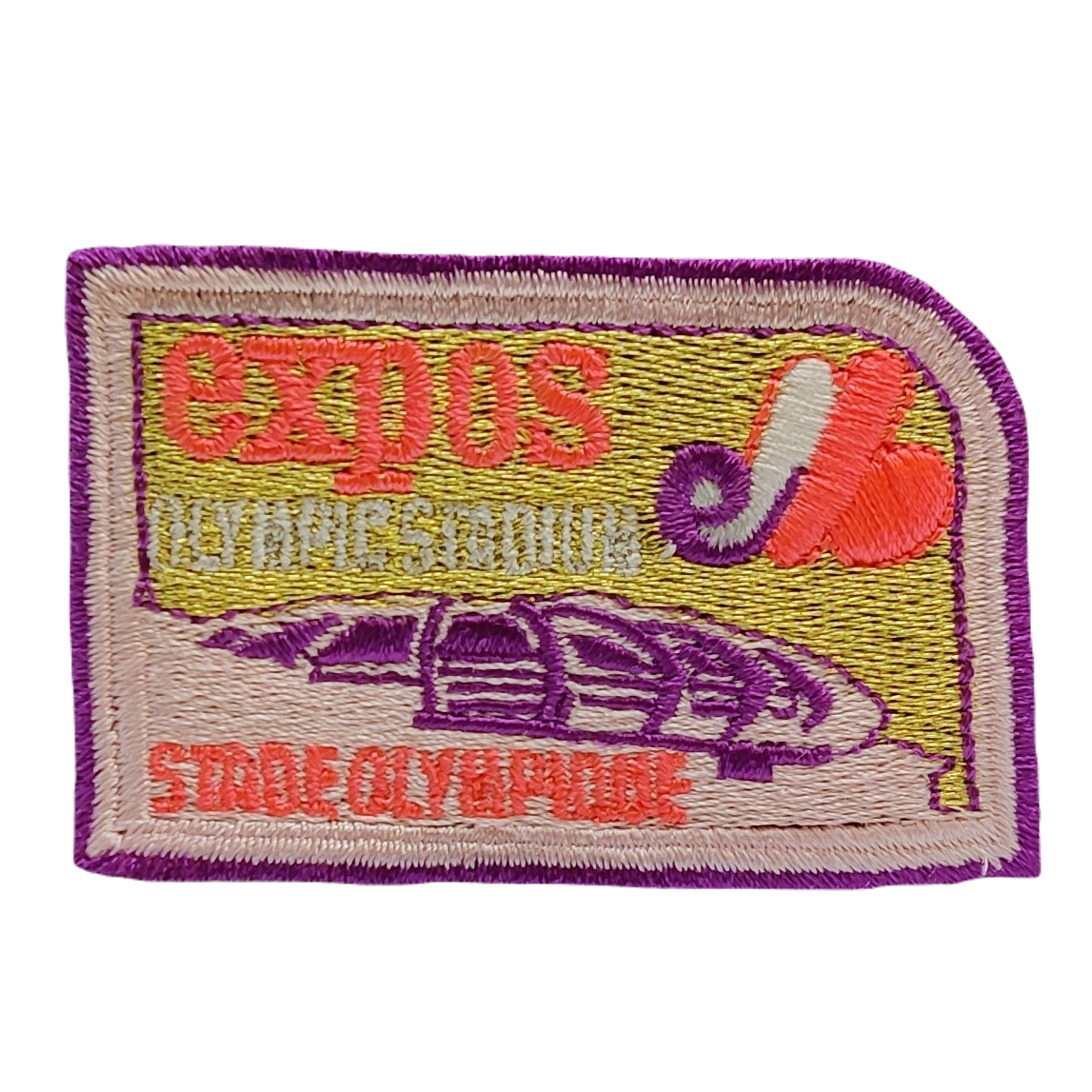- Side Patch: An evocative representation of the Expos' home stadium, highlighted with the bold "Stade Olympique" lettering.