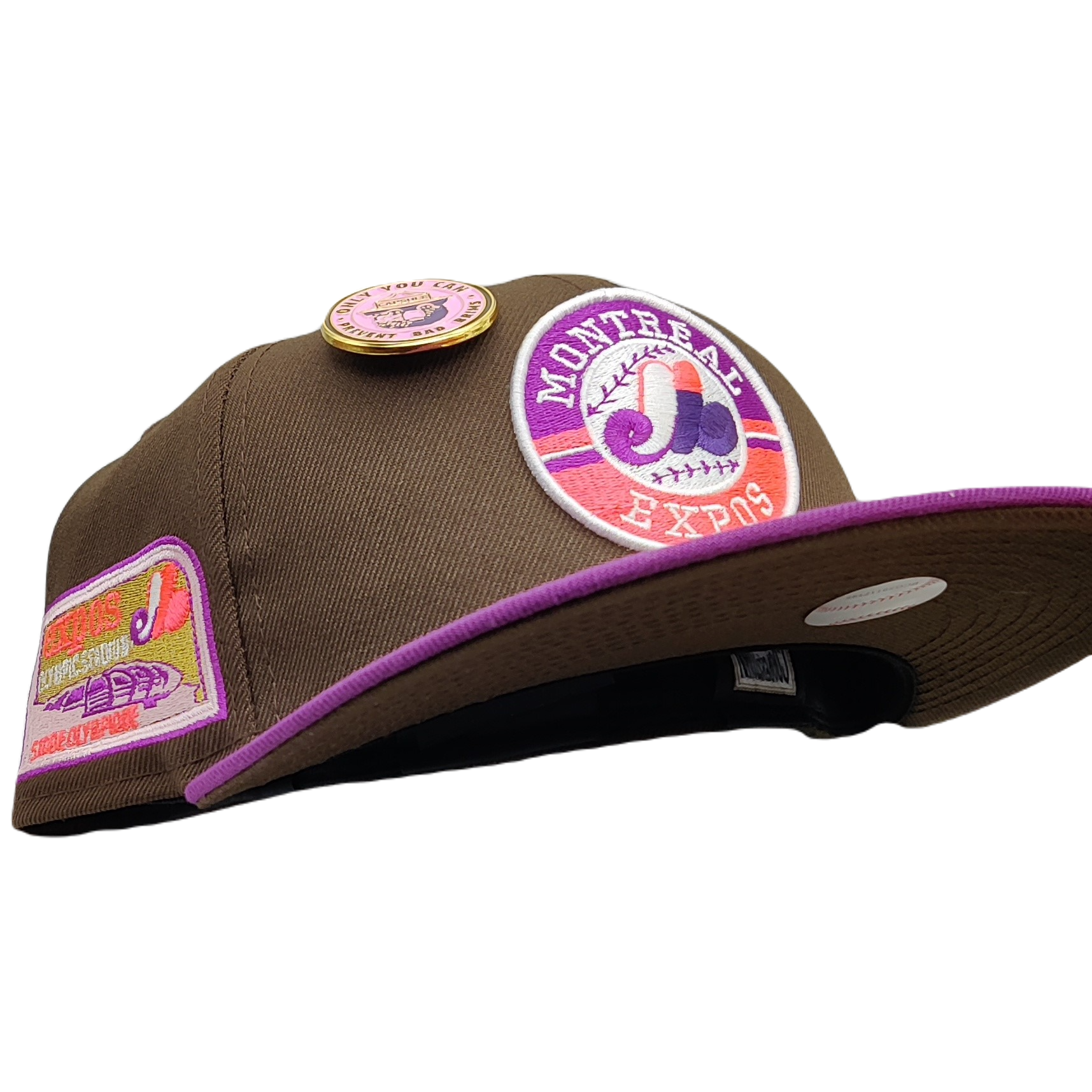 Embrace the spirit of baseball's past with the New Era 59Fifty Montreal Expos Commemorative Hat. This captivating fitted cap beautifully intertwines the Montreal Expos' legacy with modern aesthetics, featuring a distinctive brown and purple colorway, detailed patches, and a unique hat pin that'll undoubtedly pique the interest of both fans and collectors.
