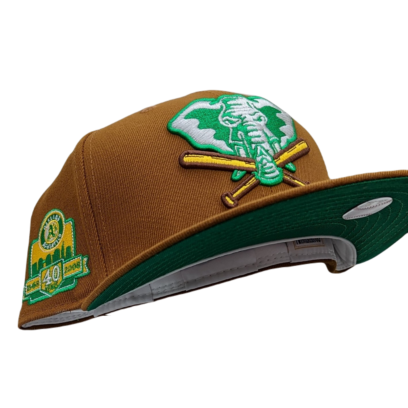 Elevate your style with a touch of vintage grace, donned with the spirit of resilience. Our New Era 59Fifty Oakland Athletics 40th Anniversary Patch Fitted Hat is a tribute to the baseball sagas woven over the decades. Designed with a bourbon crown and brim, it emanates an air of sophistication. The kelly green under visor infuses a dose of freshness, while the unique design elements narrate tales of triumph and determination. The key features include: