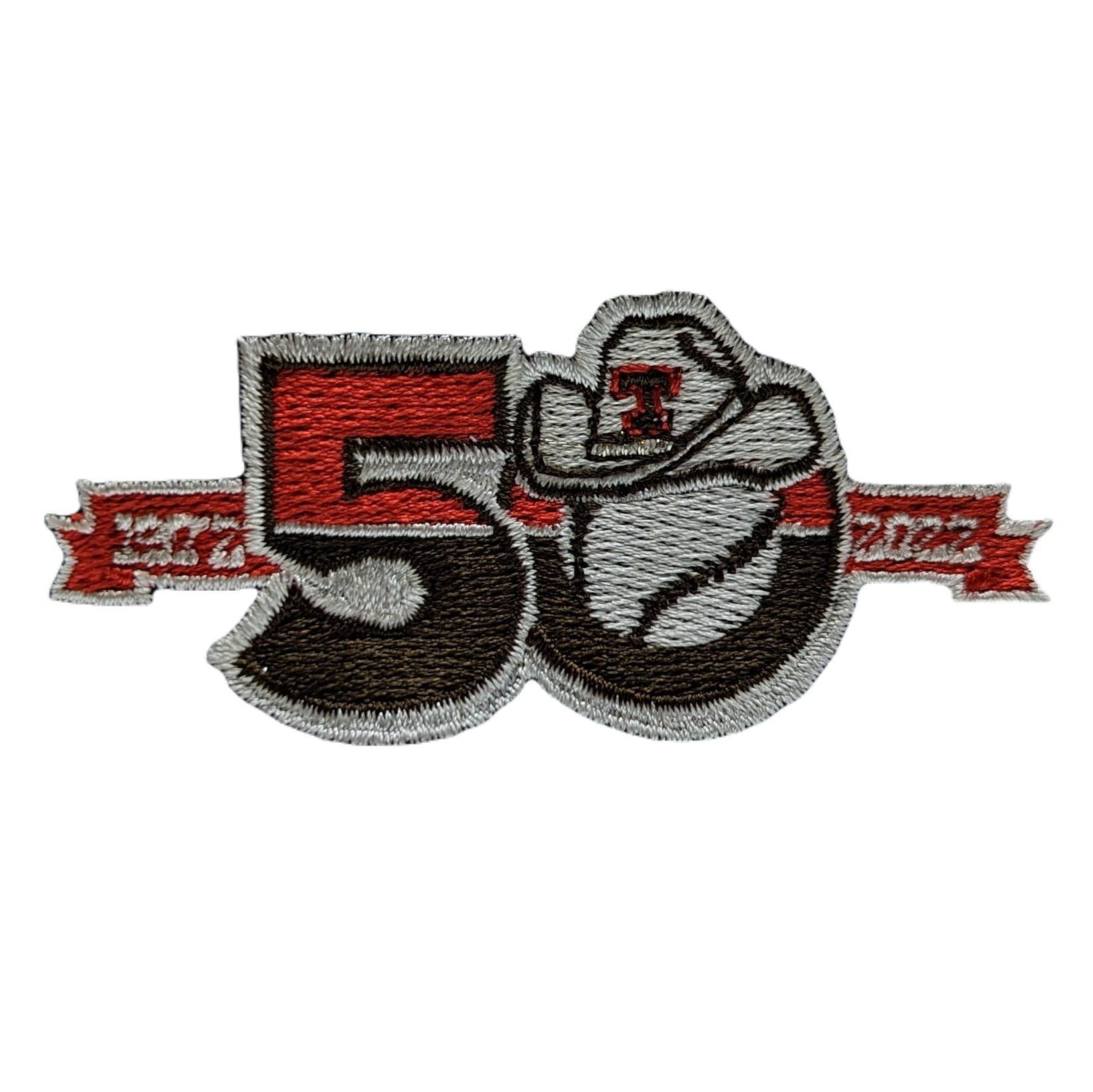 - Side patch: The 2022 Anniversary logo features the Texas Rangers 50th anniversary logo, the number 50 in red and brown, and a cowboy hat-wearing baseball as the zero – a nod to the original Texas Rangers logo. Worn on the right sleeve of all Rangers jerseys during the 2022 season.