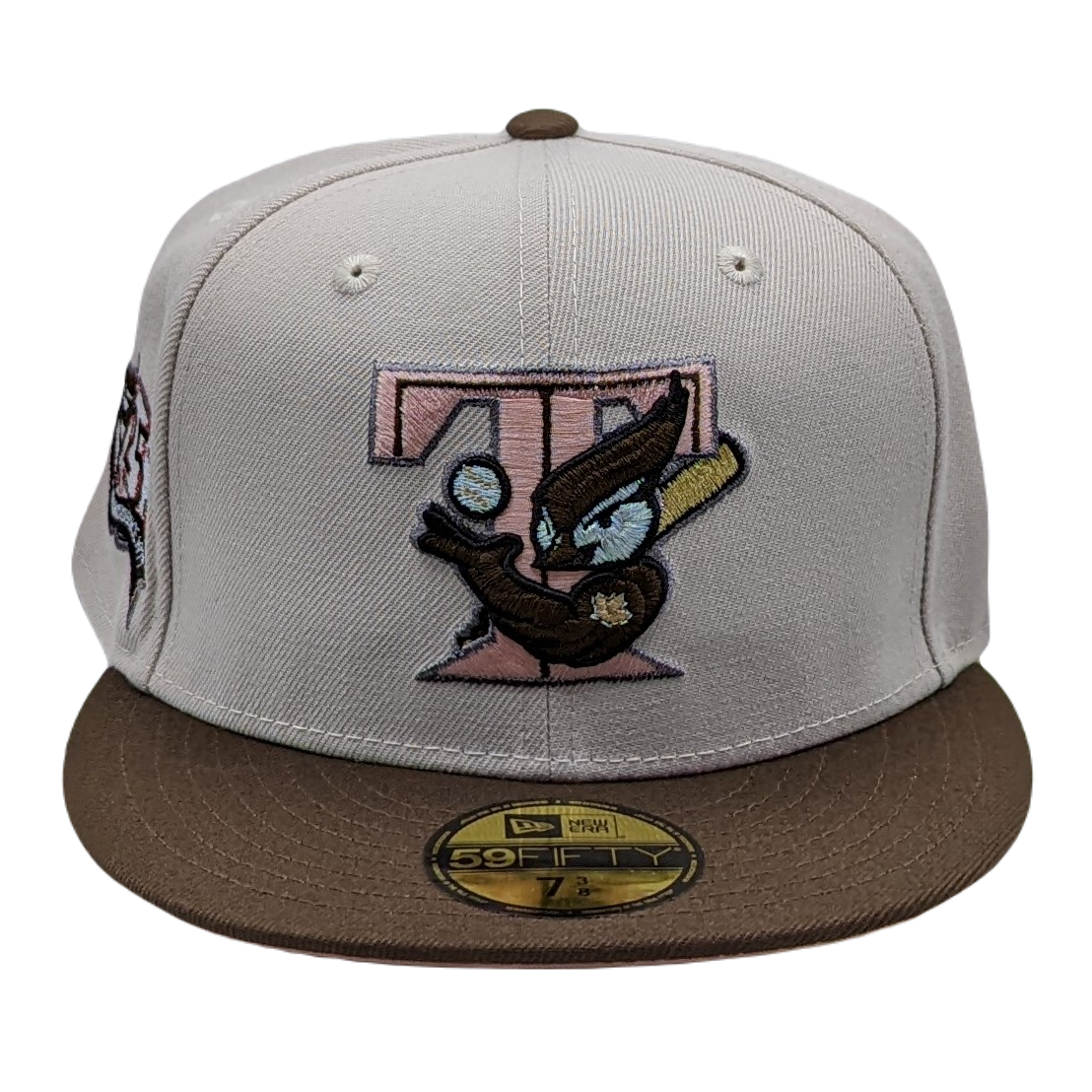 - The back of the hat features a flat batterman logo in white, brown, and peach.